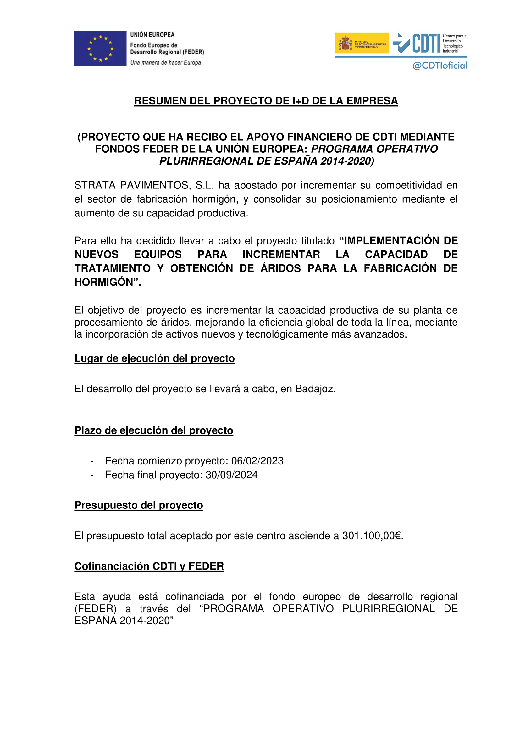 PROYECTO QUE HA RECIBIDO EL APOYO FINANCIERO DE CDTI MEDIANTE FONDOS FEDER DE LA UNIÓN EUROPEA: